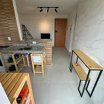 A pousada Condominio Jardim Dos Coqueiros 3 Andar tem cozinha equipada equipada com comodidades, tais como microondas, refrigerador e utensílios de cozinha para autosserviço.
